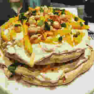 This recipe uses Stevia to sweeten the pavlova and delicious, creamy greek yoghurt which goes beautifully with the sweetness of the mangoes and the crunch of the macadamias and toasted coconut. It can be made diabetic friendly depending on the toppings you use and keto friendly if you substitute the yoghurt for unsweetened cream.